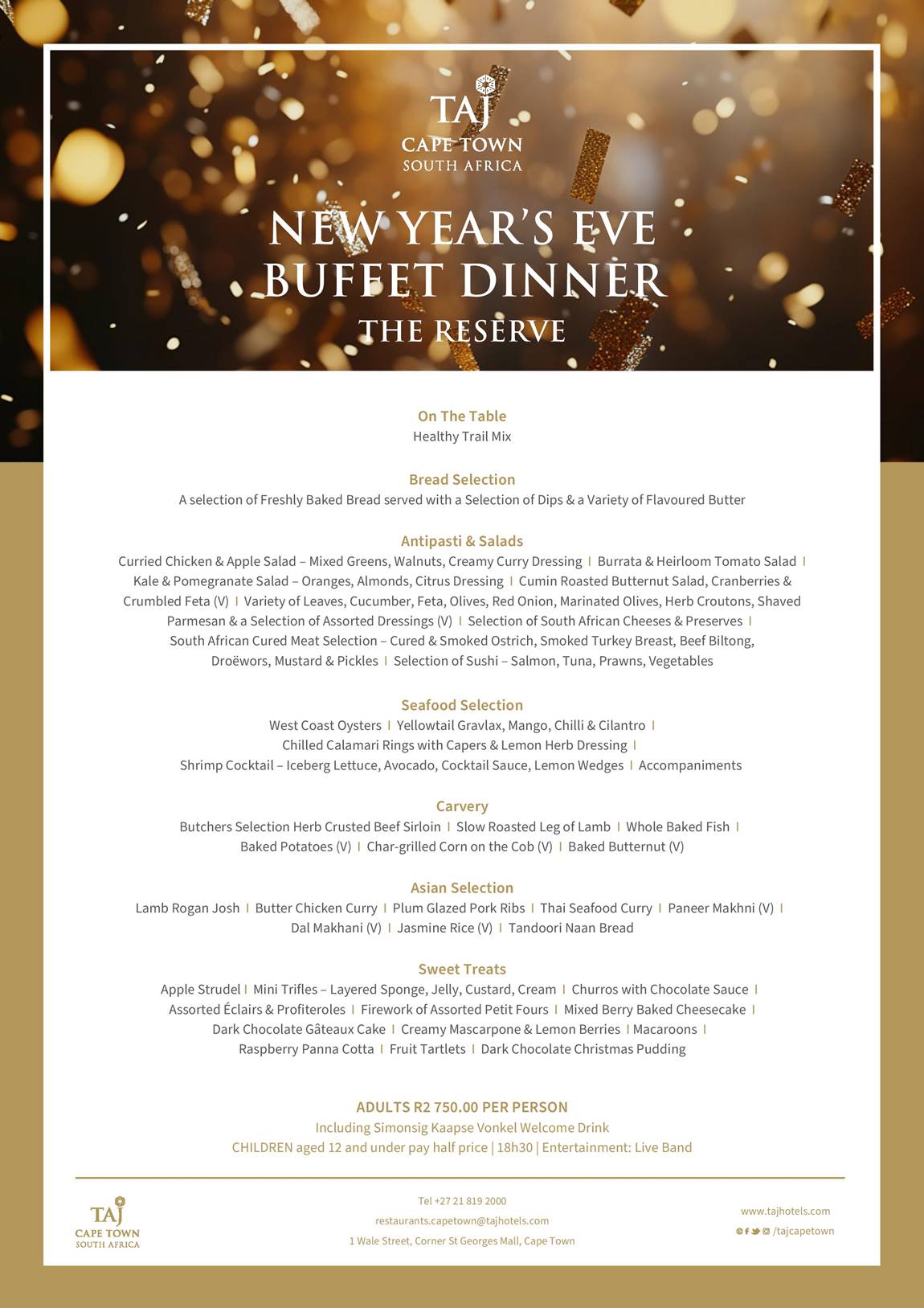 If the plan is to start 2025 in style, The Reserve at Taj Cape Town has crafted a New Year’s Eve celebration that blends elegance, indulgence, and a pinch of festive magic.