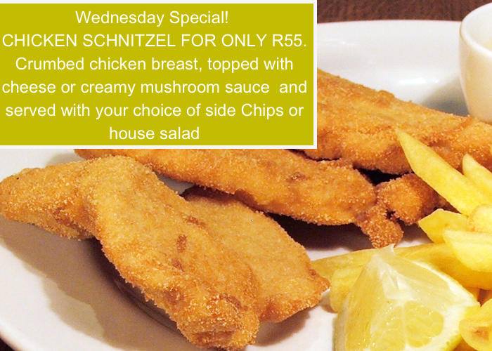 Why not join Tony’s Roma in Table View for one of the best lunch specials around. Get a deliciously crumbed chicken breast, topped with cheese or a creamy mushroom sauce and served with either chips or a side salad for only R55.
