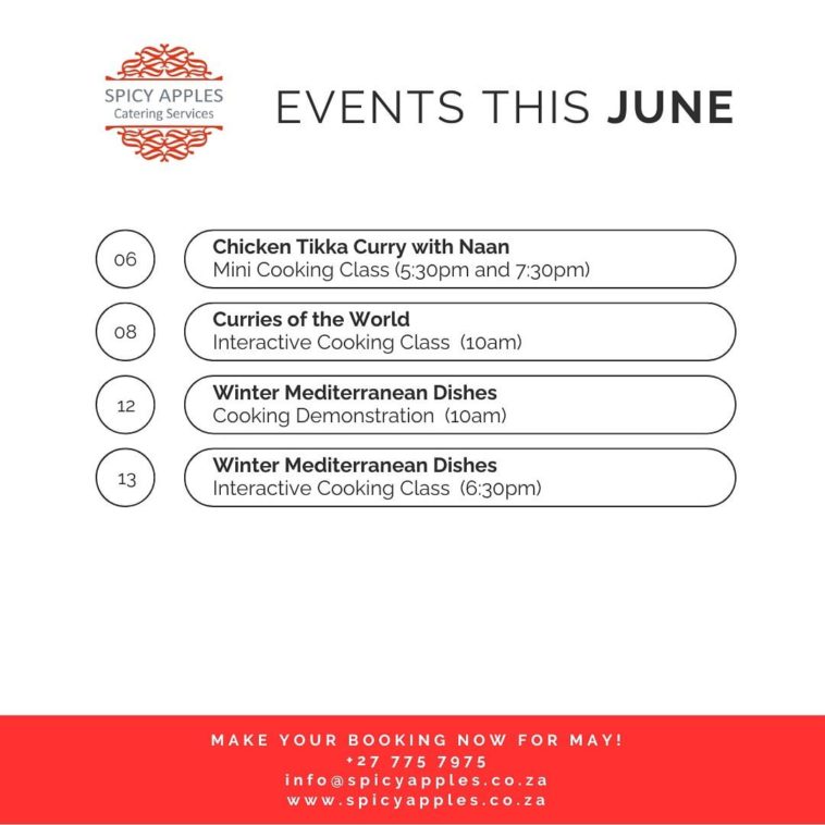 This June, Spicy Apples is offering an array of delightful culinary experiences at Beckhuis Kitchen in Worcester, perfect for warming up the winter season with flavorful dishes and fine wine.