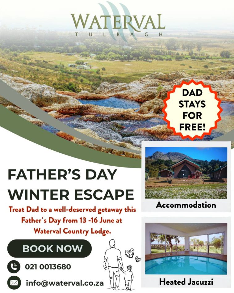 Waterval Country Lodge in Tulbagh has just dropped a Father’s Day deal that’s too good to miss — and yes, Dad stays for FREE.