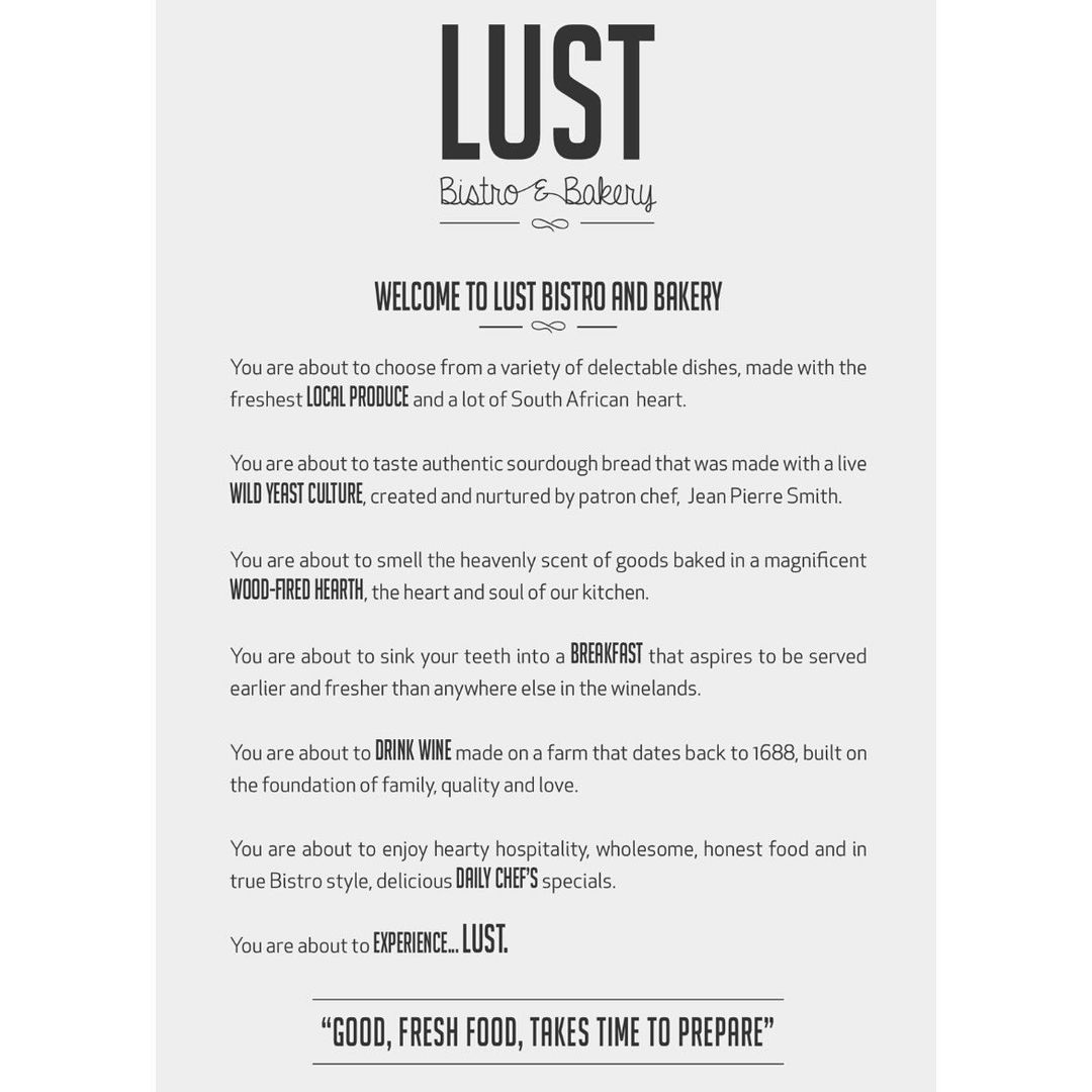 Lust Bistro & Bakery in Paarl/Franschhoek is open for take-away.