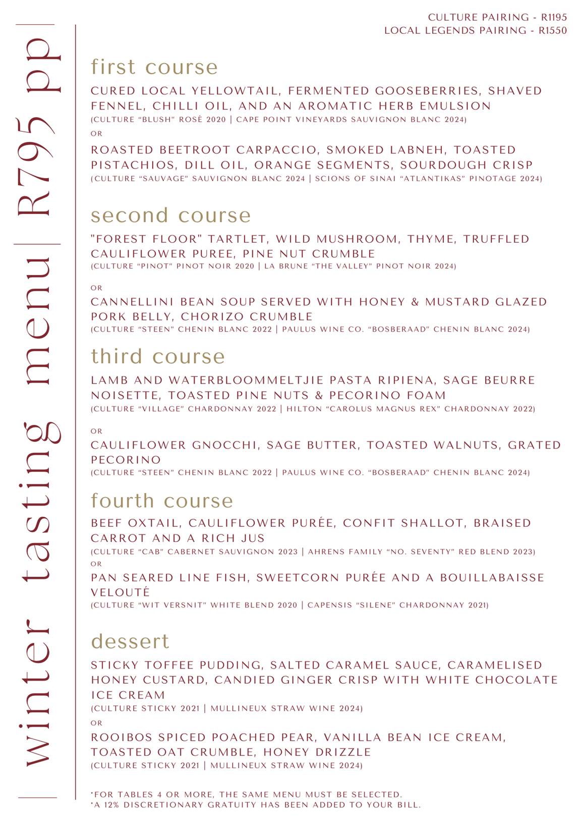 🍽️ Winter Tasting Menu: R795 pp | Wine pairings from R1195