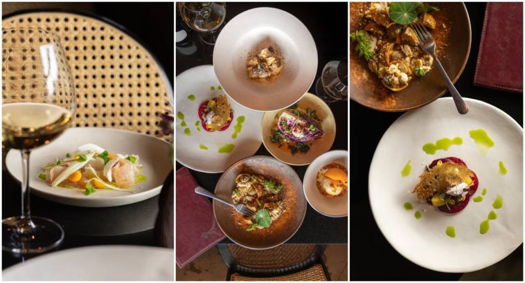 - The evening kicks off with a choice between cured yellowtail with fermented gooseberries or beetroot carpaccio with smoked labneh — setting a refined and flavourful tone.