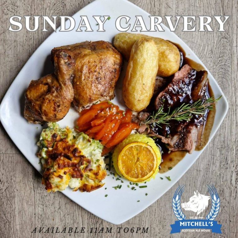 - This Sunday Carvery extravaganza is the perfect way to round off your weekend. Delight in a feast of succulent meats, flavorful sides, and mouthwatering accompaniments, expertly prepared to perfection. Whether you’re craving roast beef, tender chicken, or succulent pork, Mitchell’s Ale House has something to please every palate. Join us today and indulge in a culinary journey that promises to leave you feeling satisfied and content.
