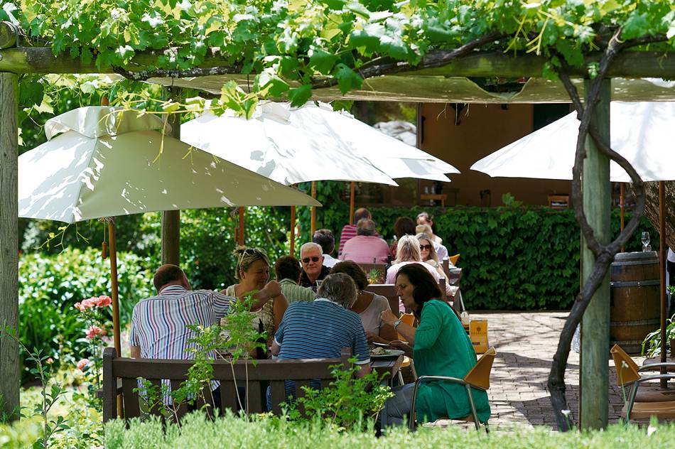 German gemütlichkeit is the order of the day in this garden restaurant in a stunning setting with a view clear across to Table Mountain in the distance. The restaurant offers a selection of dishes ranging from cheese platters to traditional German and South African food. Eat al fresco on the garden terraces in summer; cosy up in the ‘Downstairs’ cellar in winter. The restaurant serves breakfast, lunch and tea, and also caters for picnics and small private functions. Booking essential, especially on weekends and holidays.