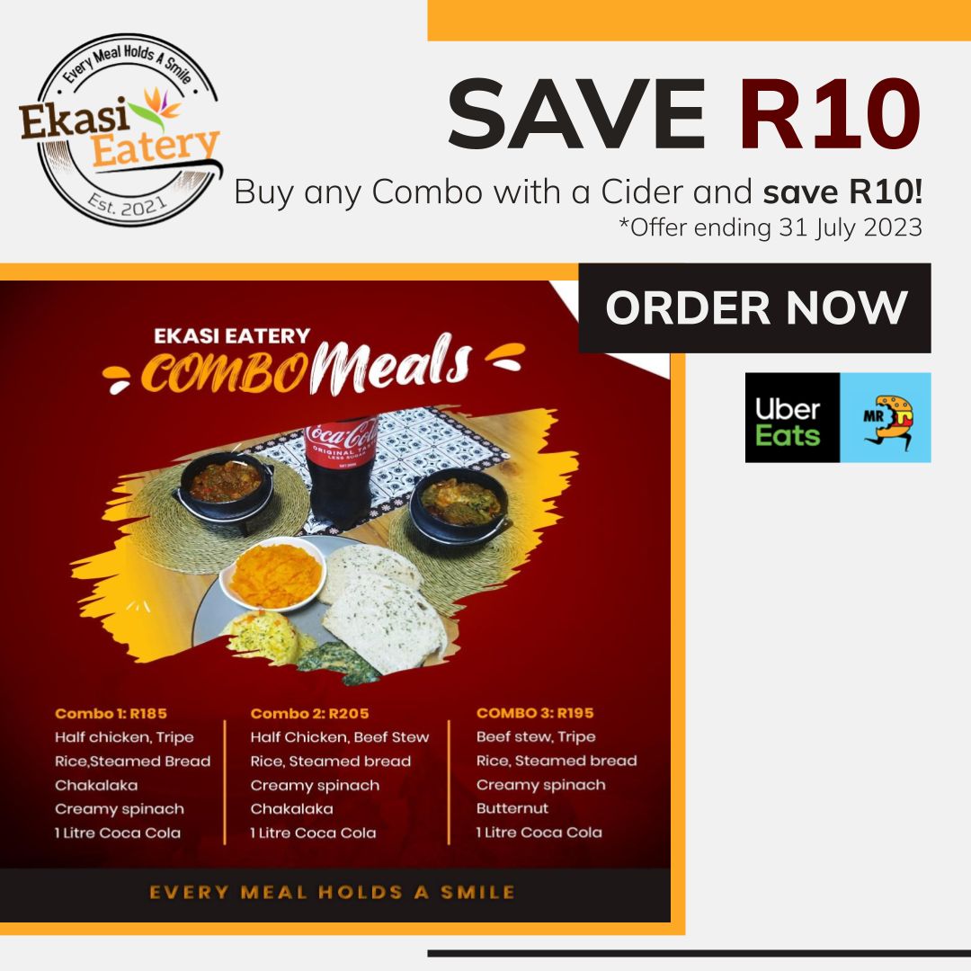 For a limited time only, until July 31, 2023, patrons can save R10 when they purchase any combo meal with a cider.