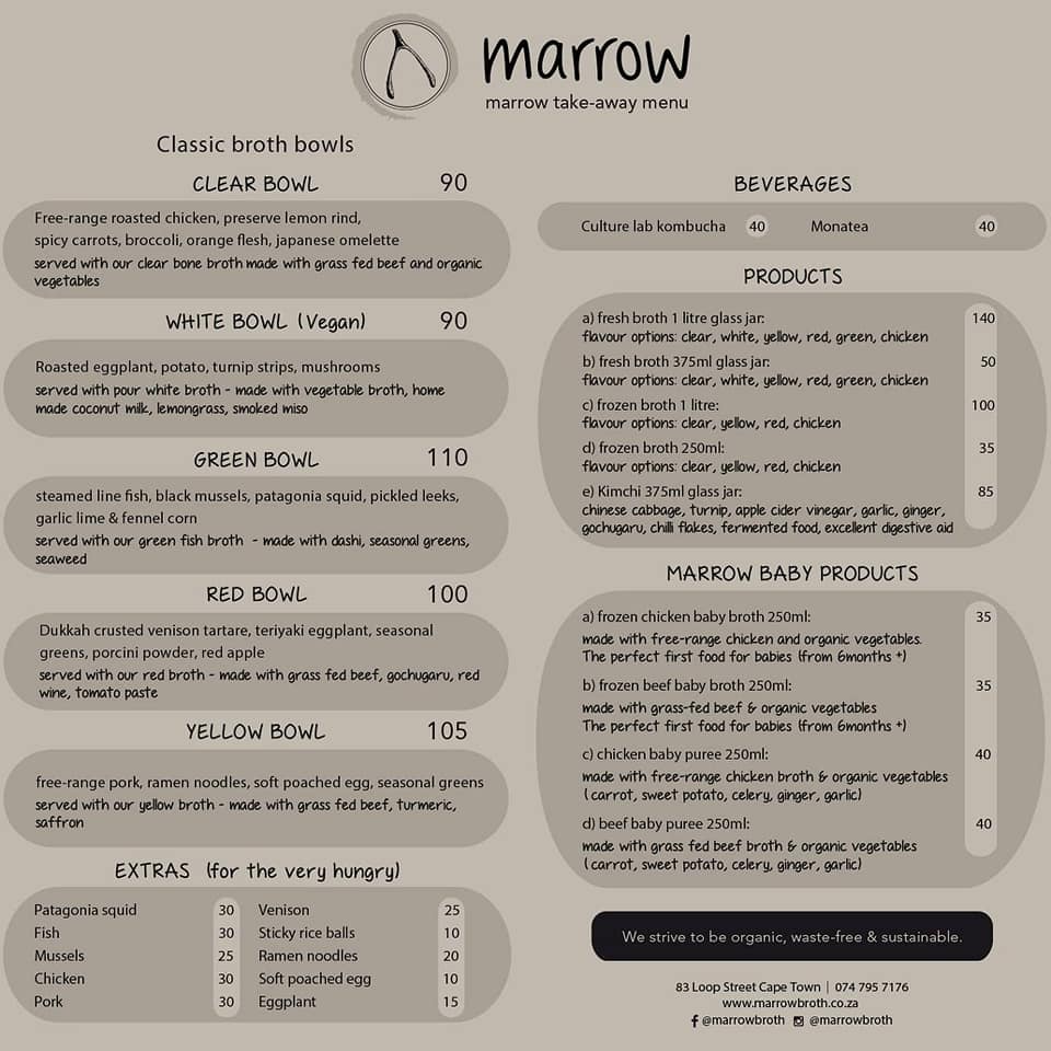 Marrow cooks up healthy, nutritious bone marrow broths that will boost immune systems and keep you in tip top shape. How needed is this new Superfood at time like this? They also do broths and purees for babies and healthy drinks and bowls.