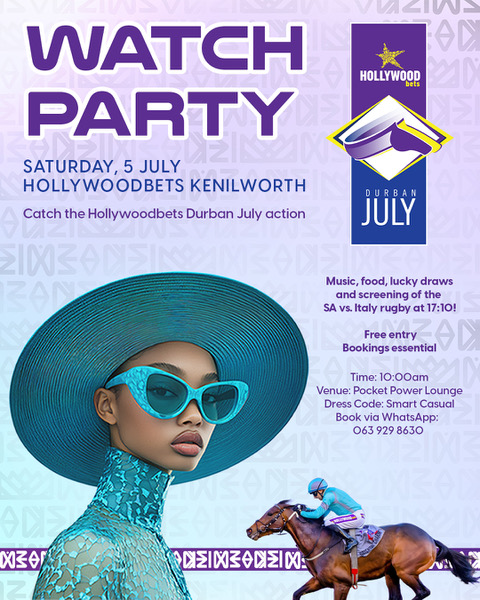 The Hollywoodbets Durban July is coming to Cape Town, minus the travel and with way more snacks. But that’s just the warm-up…when the hooves slow down, the tackles start. Stick around for the live screening of the South Africa vs. Italy rugby match at 17:10. Scrum, sip, repeat.