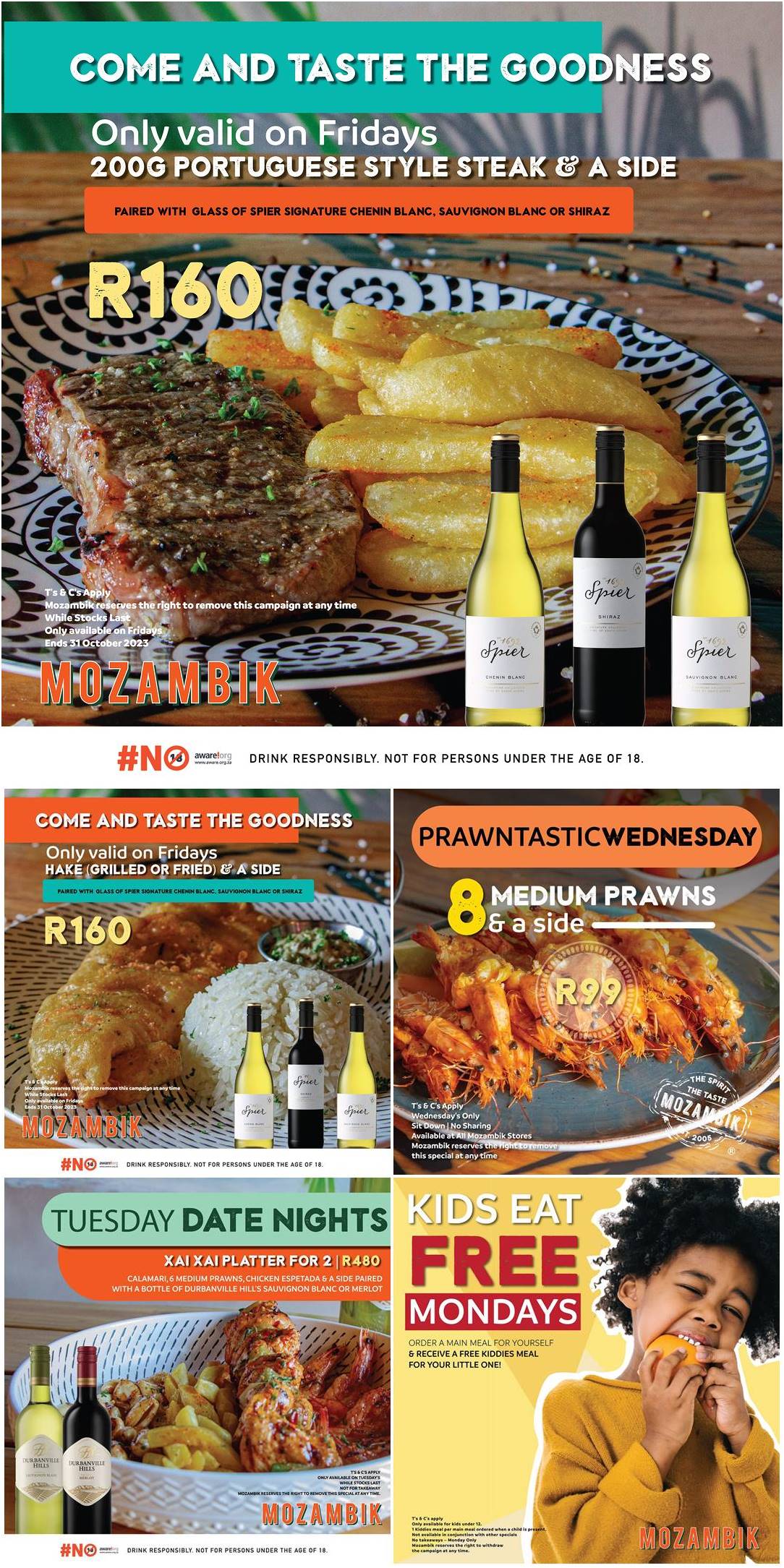 - Mondays at Mozambik present a delightful prospect for families. The little ones dine for free as parents order a hearty main meal, earning a complimentary kiddies’ meal. It’s the perfect excuse to gather the clan and relish in a shared experience.