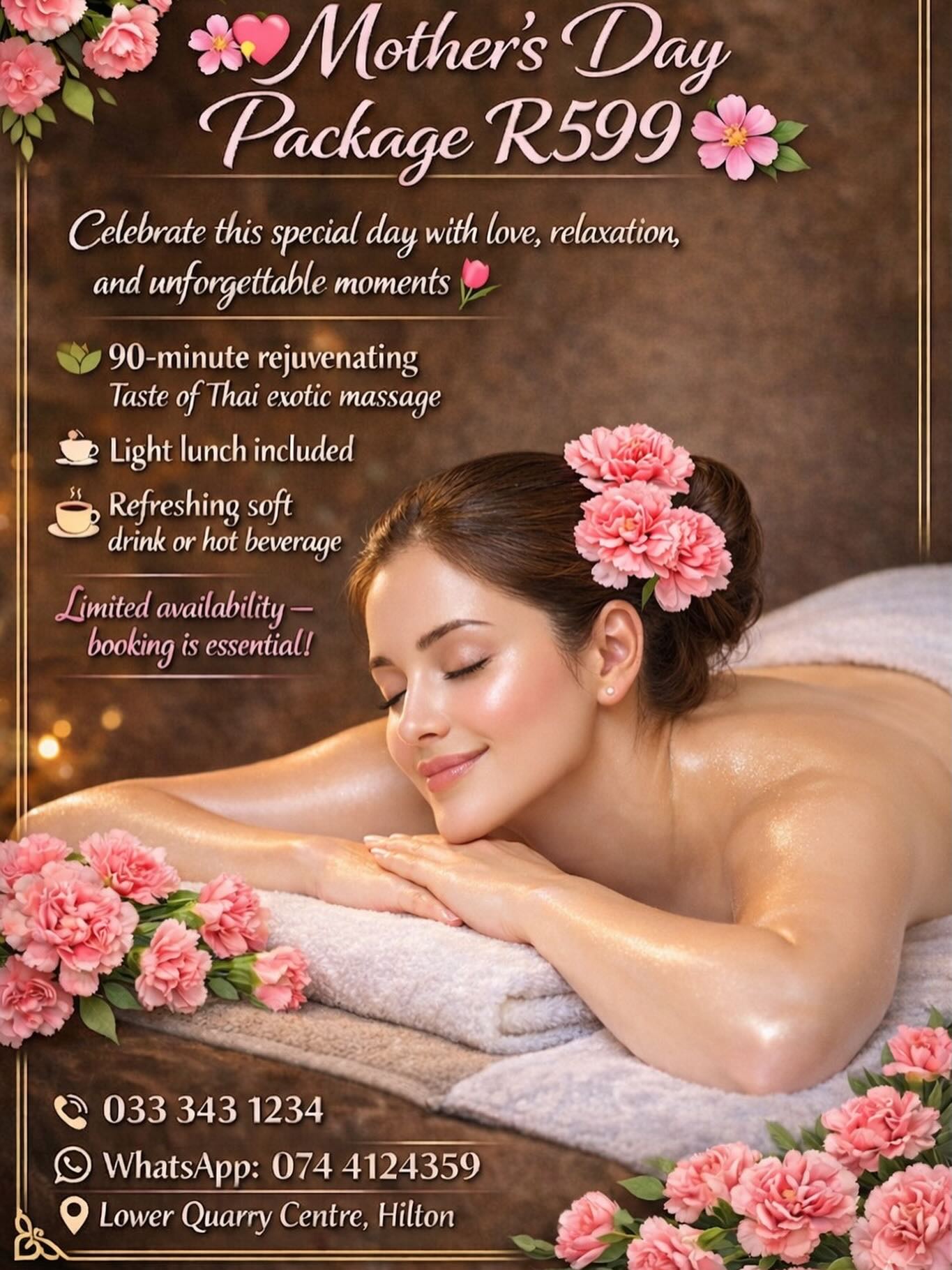 Their Mother’s Day Spa Package (R599 per person) focuses on what she actually wants—time out, a bit of quiet, and something that feels considered from start to finish.