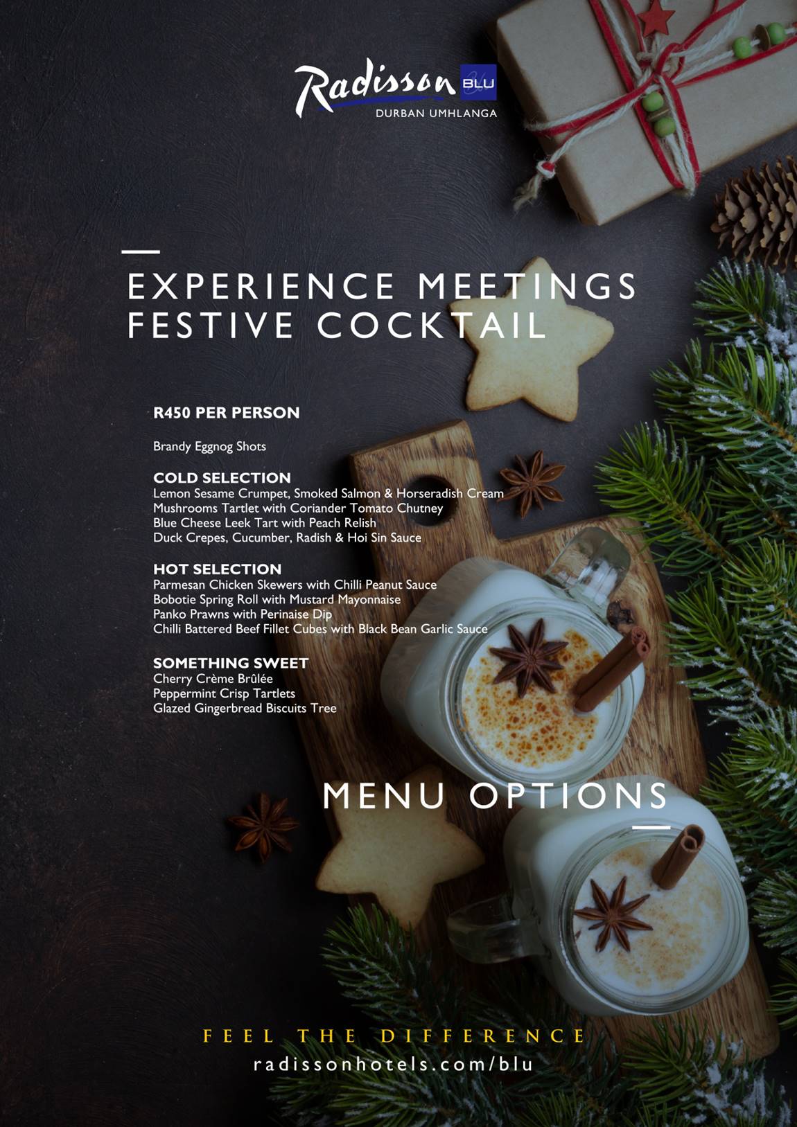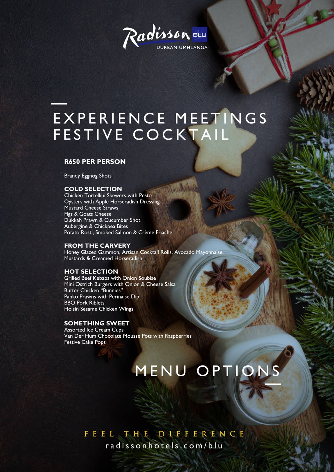 To book, call 031 575 8500 or email info.durban.umhlanga@radissonblu.com