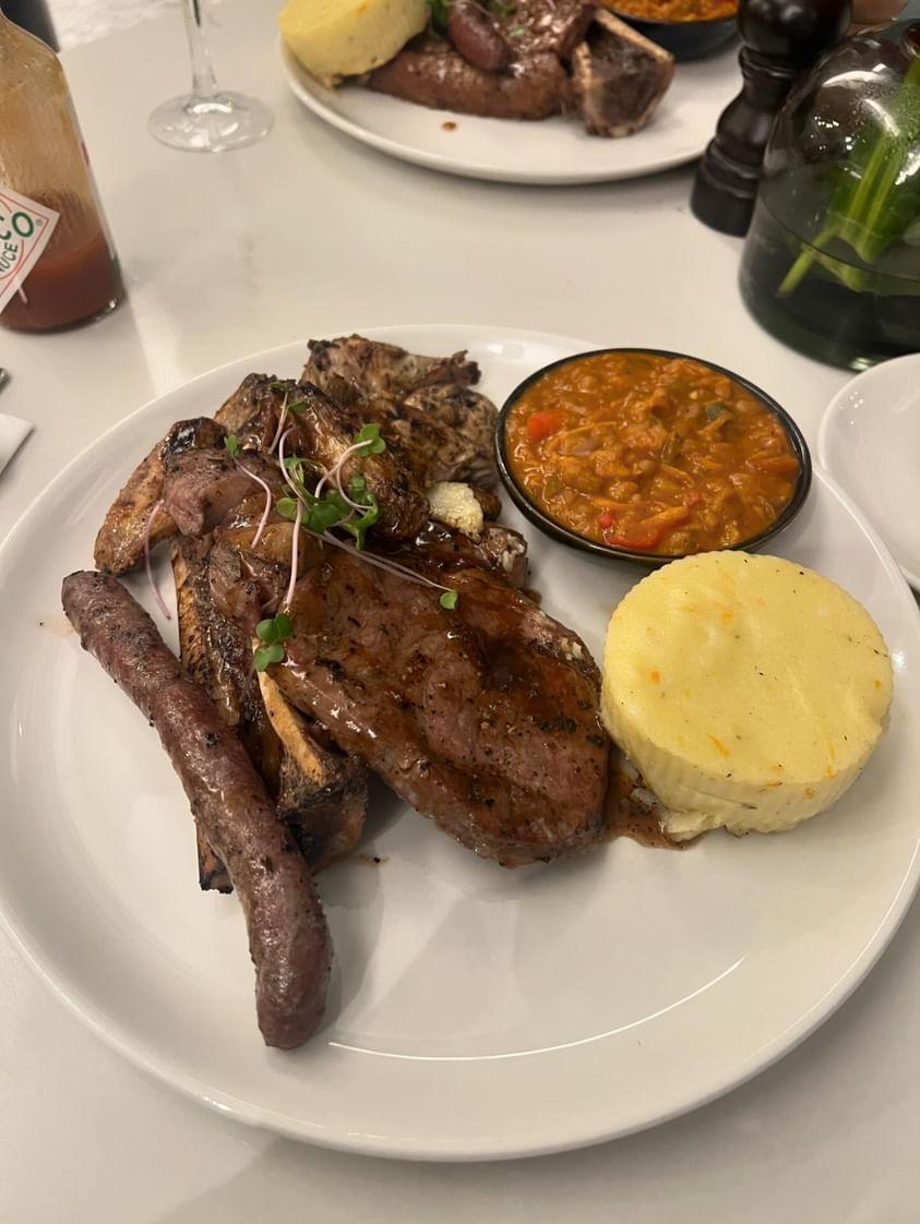 - The Braai Night menu offers a tantalizing array of dishes to satisfy every palate. Starters include a deconstructed Greek salad, curried noodle salad, and a variety of freshly baked bread. The main event features Cajun chicken quarter legs, succulent lamb leg chops, flavorful local boerewors, and tender sirloin steak straight from the grill. Accompanying these mouthwatering meats are sides of cinnamon-spiced butternut, baby marrow with green beans and roasted tomato, pap, chakalaka, and garlic baby potatoes. To round off the evening on a sweet note, guests can indulge in desserts like cheesecake and double chocolate brownies.