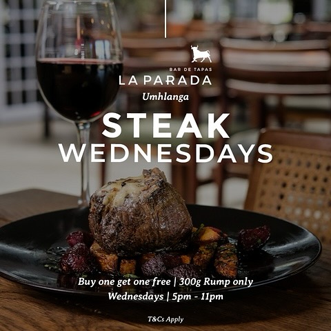 • Pair your meal with one of their signature cocktails or a glass of wine from their impressive selection, and let the evening unfold in style. Located in the heart of Umhlanga Ridge, La Parada combines a vibrant atmosphere with a touch of elegance, making it the ideal spot to unwind after a long day. Whether you’re a steak enthusiast or just looking for a great deal on quality dining, this Wednesday special is one to mark on your calendar.