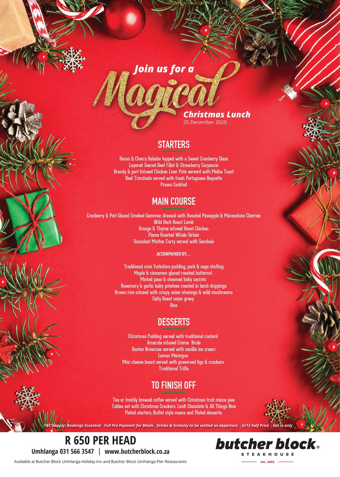 With a range of starters, mains + sides as well as desserts and coffee or tea to finish your meal you are in for a magical Christmas experience.