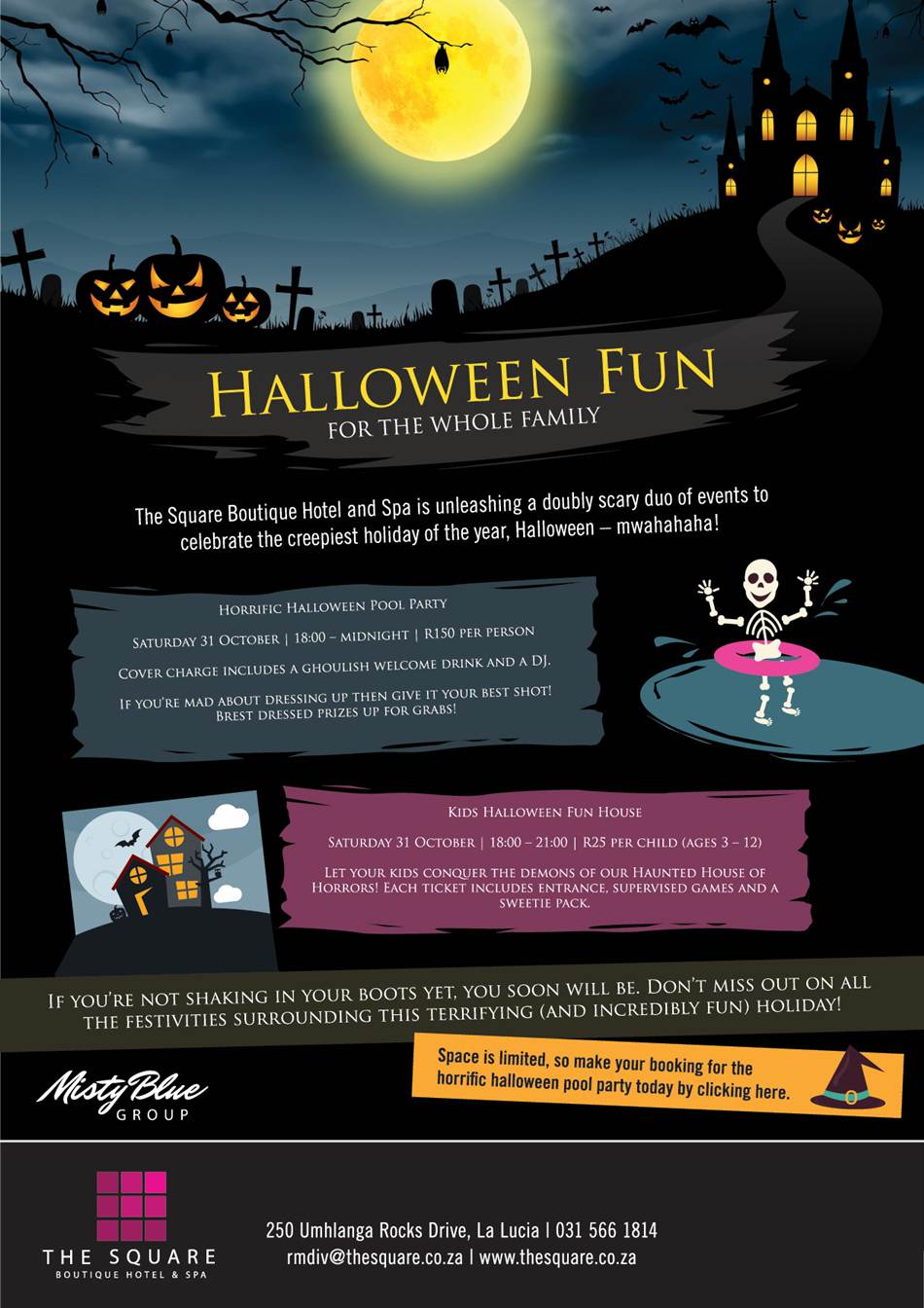 A truly horrific pool party will be hosted at the hotel from 18h00 until midnight for R150 per person. The cover includes a ghoulish welcome drink and DJ. Prizes for best dresses will also be given out. For children between the ages of 3 – 12, there is also the Halloween Fun House, where they can conquer the demons of a haunted house of horrors. Tickets are R25 and include entrance, supervised games and a sweetie pack.