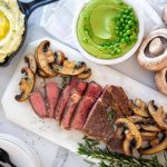 - Sautéed Portabellos, Steak, Coriander Mash & Pea Purée