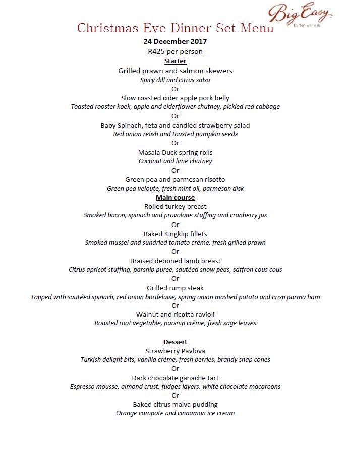 Join the Big Easy Winebar & Grill for a three course feast that features grilled prawns and salmon skewers, rolled turkey breast, rump steak, lamb breast and traditional Christmas desserts with a twist.