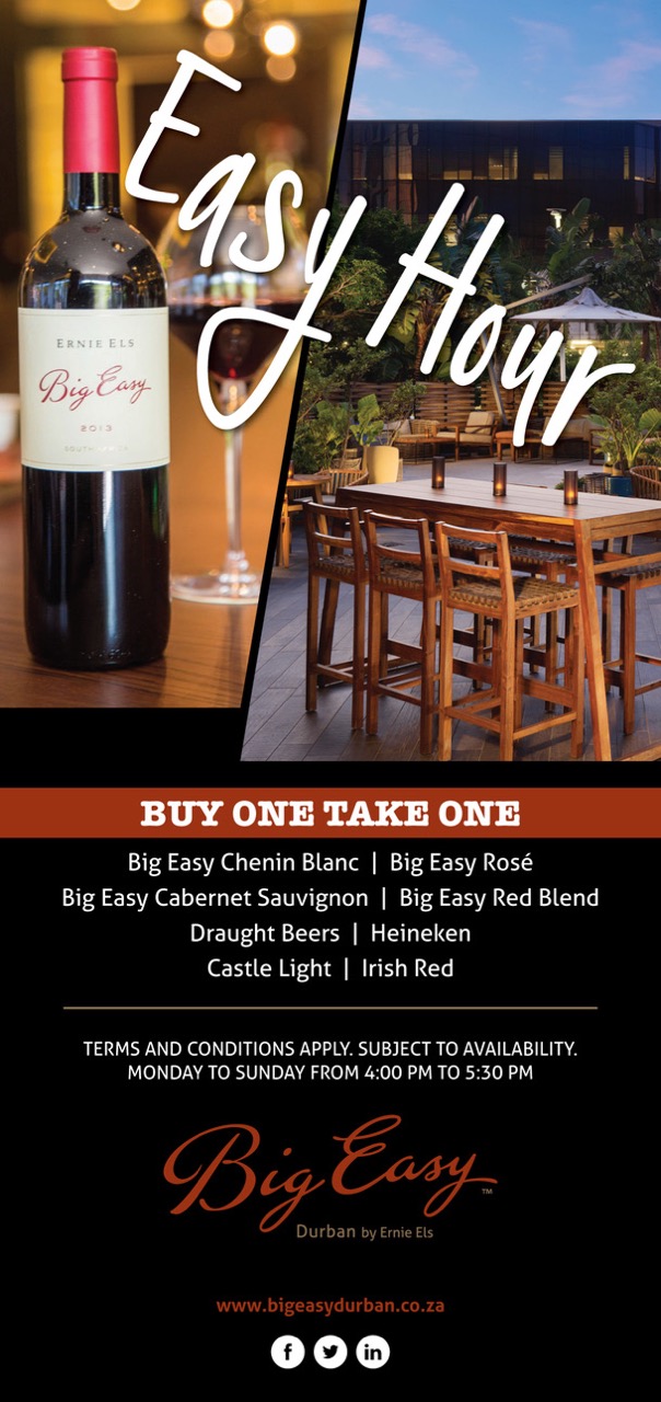 Their Easy Hour special is now even more reason to stop by after a long day and enjoy the company of friends. From 4pm to 5 30pm, when you buy one of their selected drinks, you receive the second on the house. The options include both wine and beer: a selection of their Big Easy Wines along with Heineken, Castle Light and Irish Red Draughts Beers.