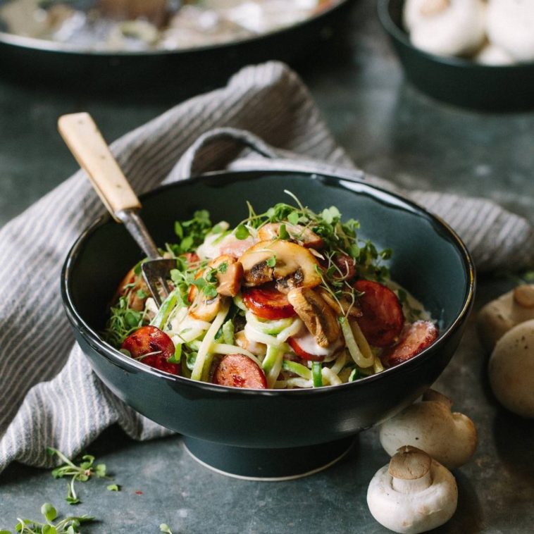 - With a few fresh ingredients and under 25 minutes, you can whip up a delicious, comforting dinner that’s as nutritious as it is flavorful. This recipe for courgette spaghetti with creamy mushrooms, pork sausage, and parmesan is the perfect example of how simple, wholesome cooking can be both quick and delightful.