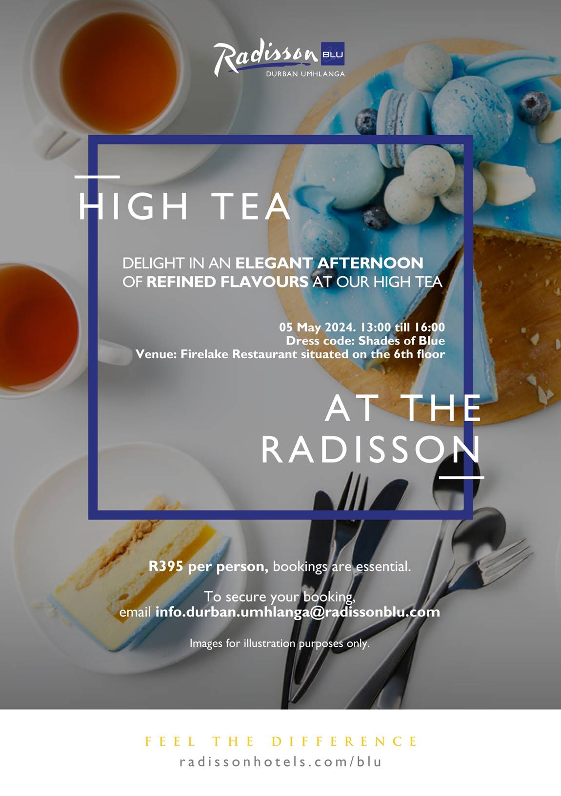 - Priced at R395 per person, this unforgettable experience offers exceptional value for those seeking a moment of sophistication and relaxation in the heart of Durban. Whether you’re celebrating a special occasion or simply craving a luxurious afternoon experience, Radisson Blu Durban’s High Tea is the perfect choice.