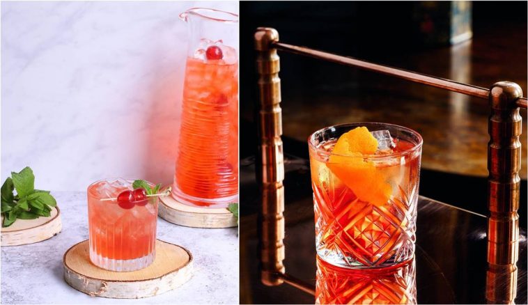 - Strain the contents over fresh ice into a double rocks glass, top up with ginger beer and garnish with some orange peel.
