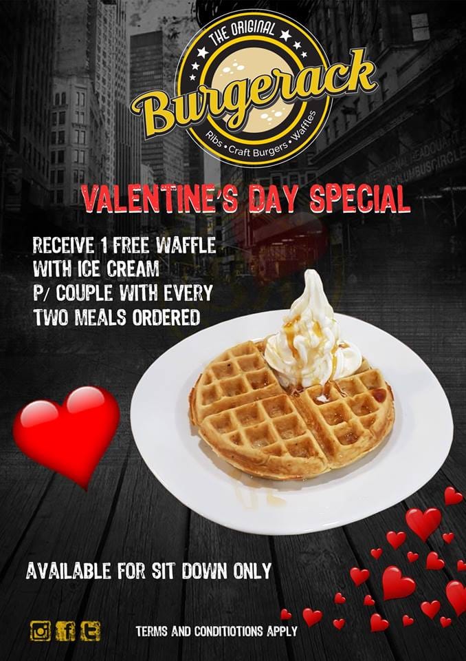 On Valentine’s Day they are offering a fantastic special just for the occasion. On the 14th of February, you will receive a free waffle with ice cream per couple with every two meals ordered. It makes the perfect dessert to end your meal at Burgerack.
