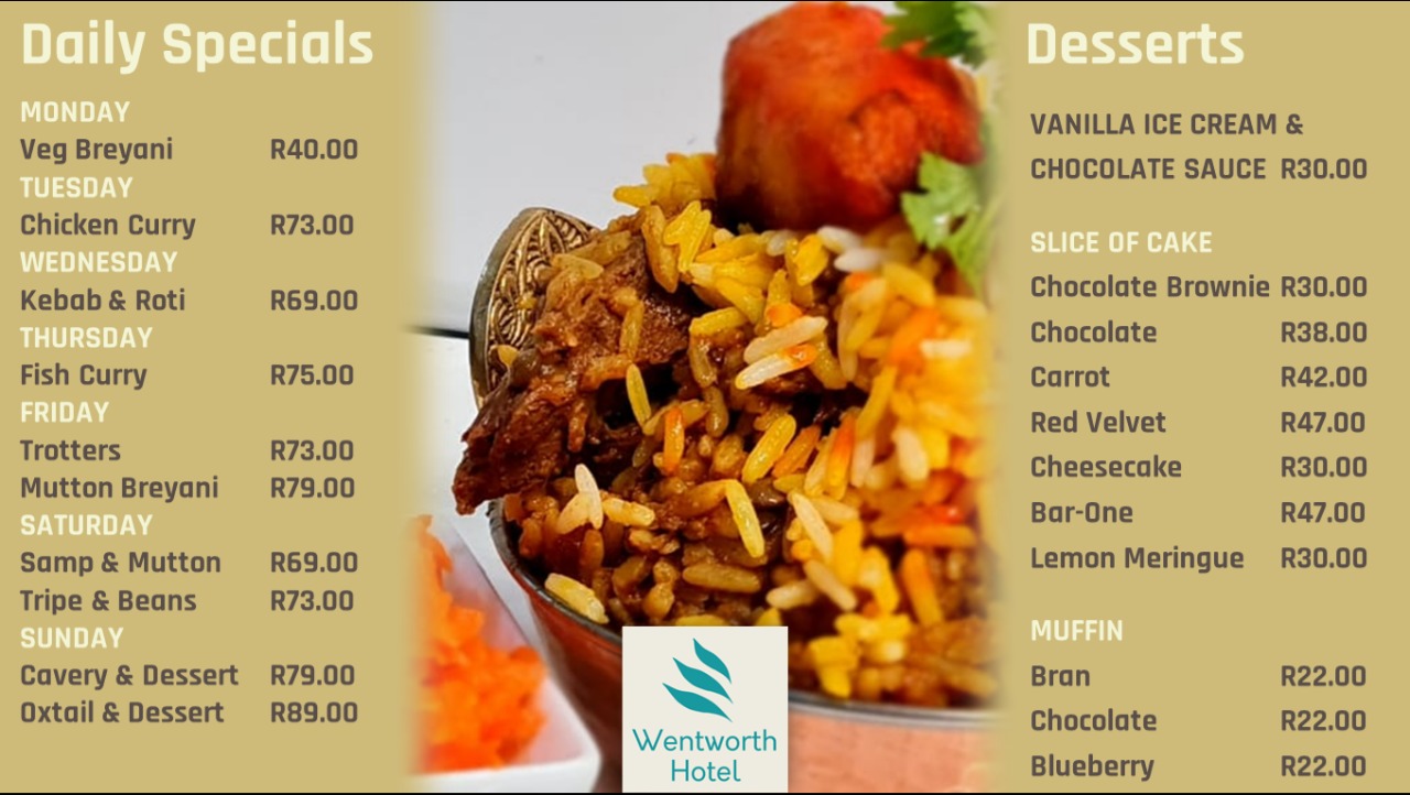 Great Daily Specials under R100 at Wentworth Hotel