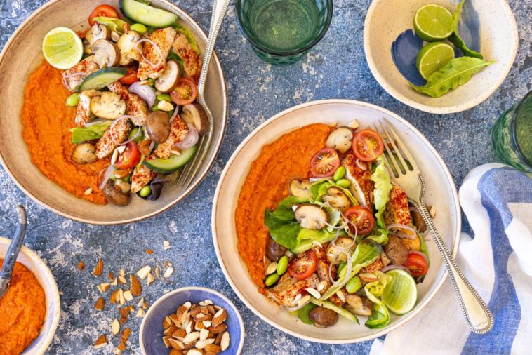 Grilled Chicken & Mushroom Salad on Romesco Sauce Recipe