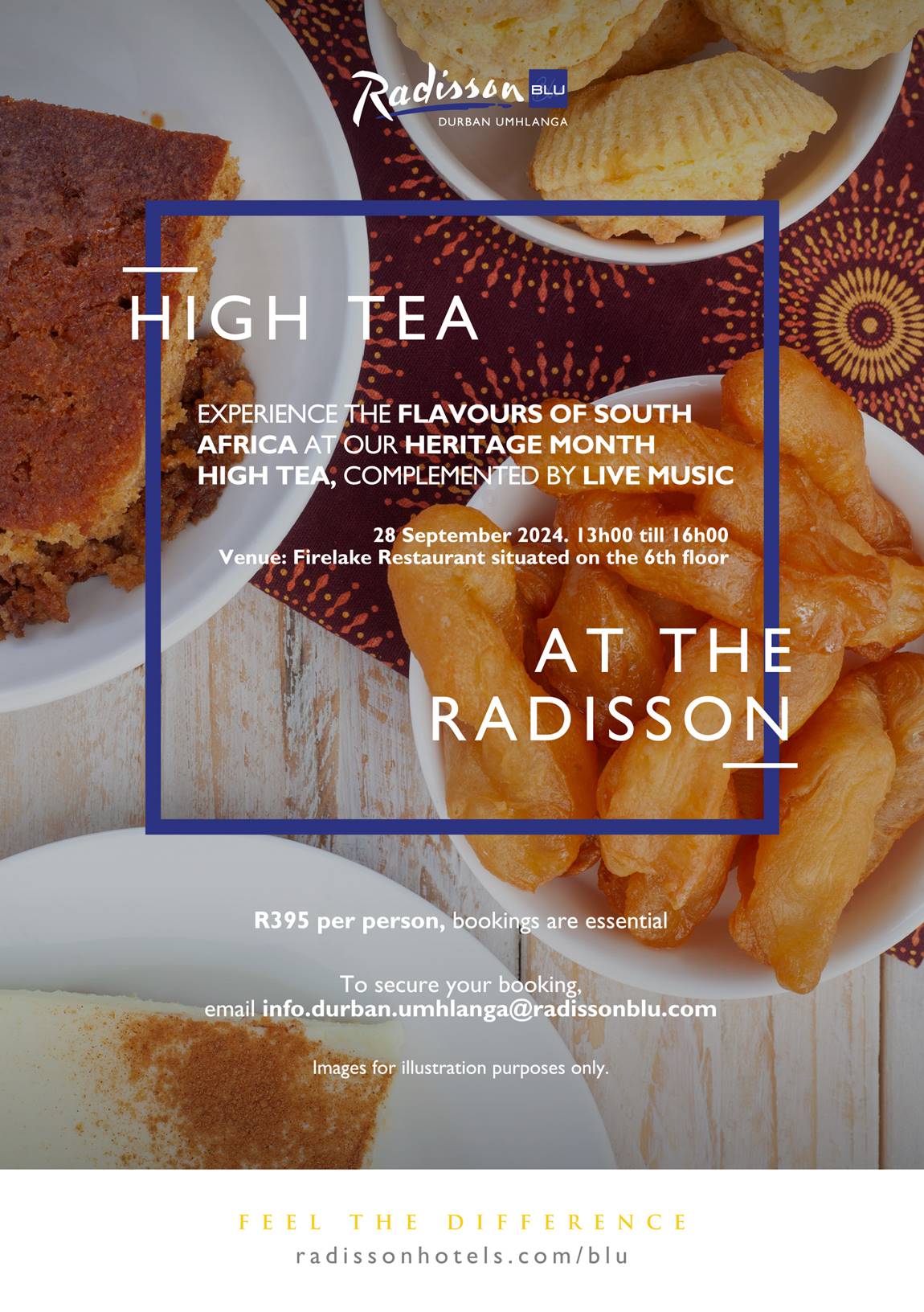 Celebrate Heritage Month in style with a South African High Tea at Firelake Restaurant, located in the Radisson Blu Hotel, Durban Umhlanga.