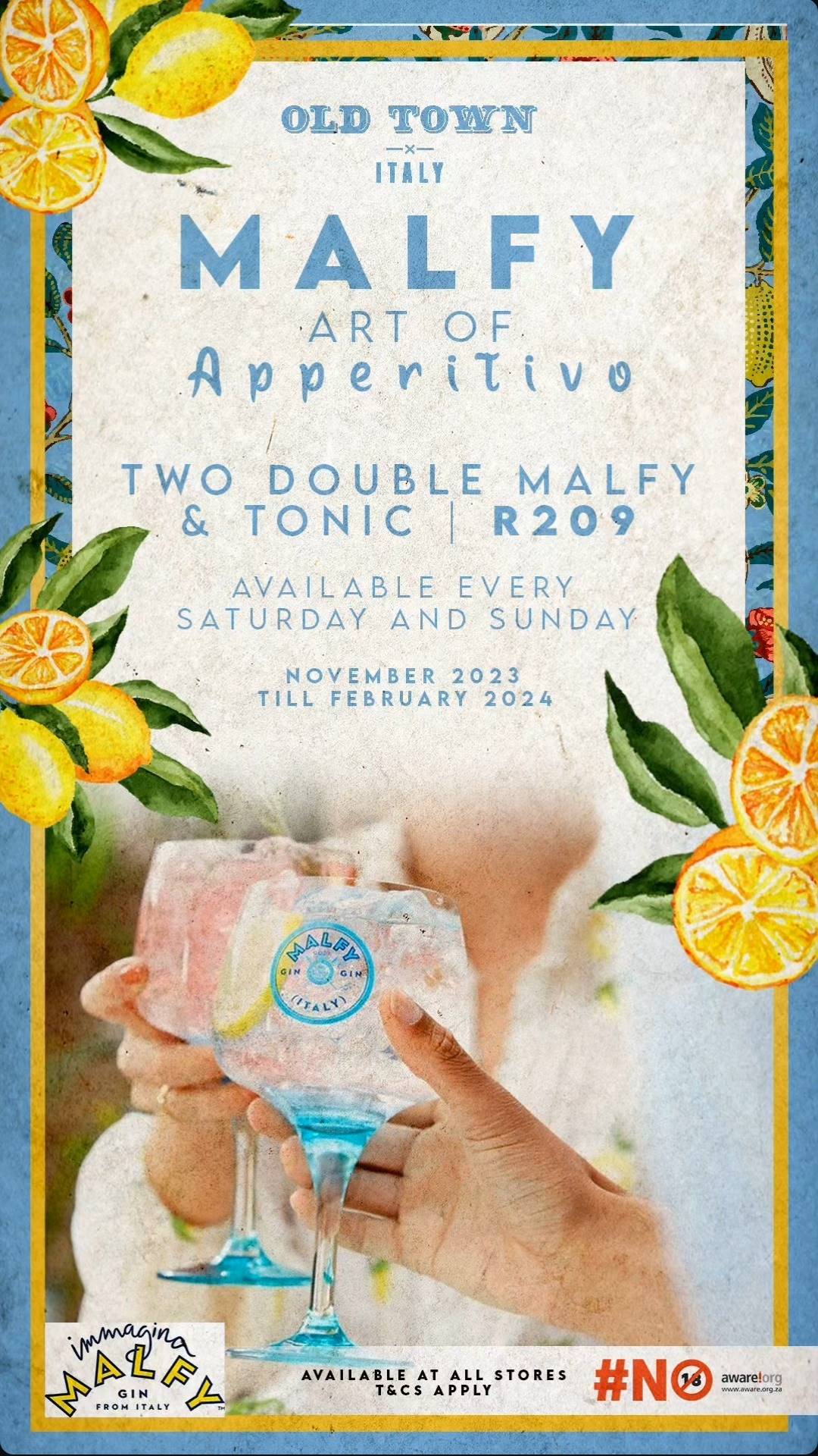 Enjoy two double Malfy & Tonics for just R209.