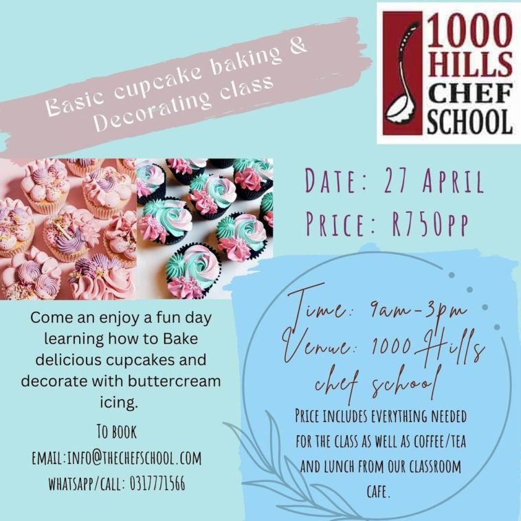 At the end of the class, you’ll take home your beautifully decorated creations to share with family and friends. Spots are limited, so act fast to secure your place! To reserve your spot, contact 1000 Hills Chef School at 031 7771566 or email info@thechefschool.com.