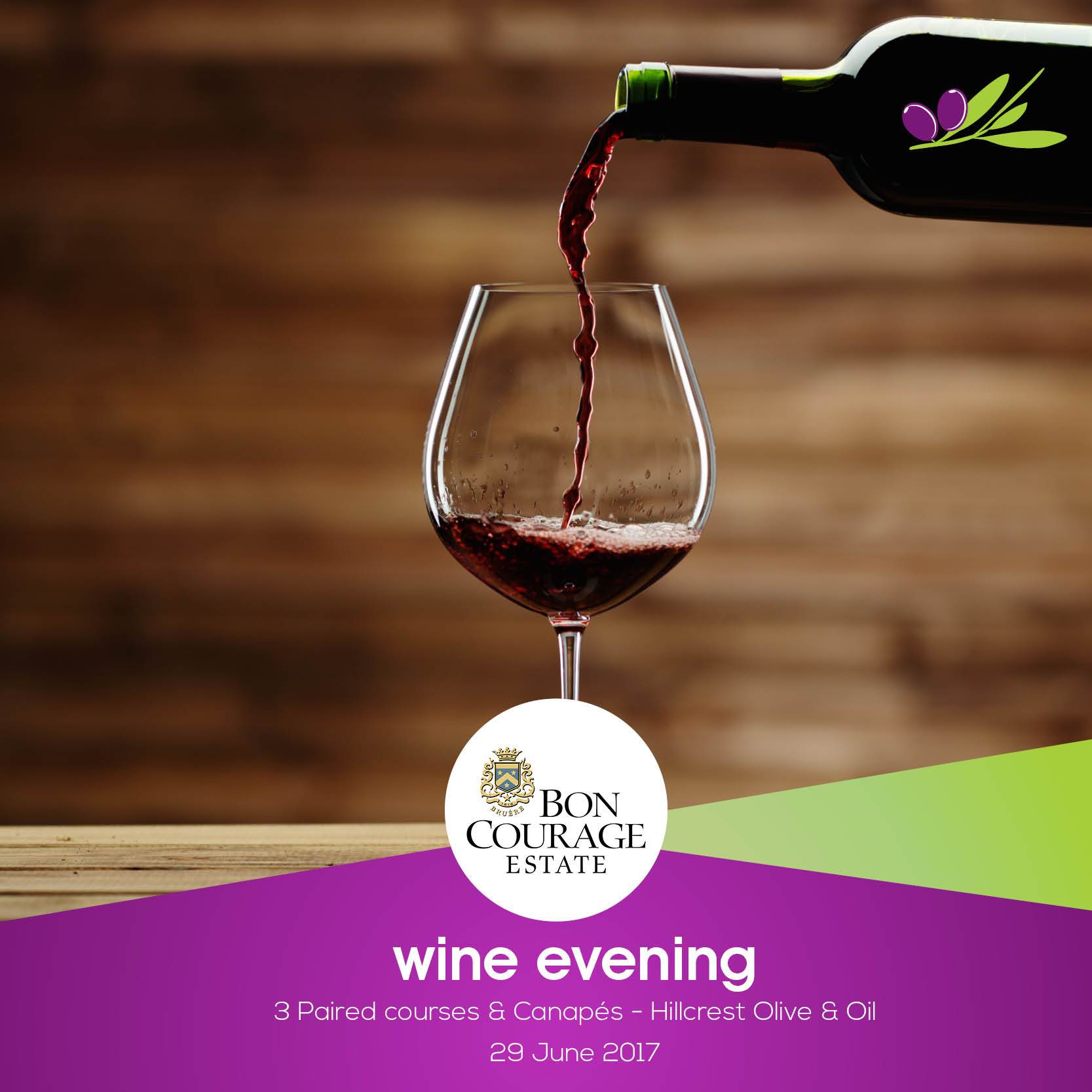 For a divine experience of the vine, join Olive & Oil in Hillcrest for a winederful evening of good food and wine, brought to you by Bon Courage. Canapés on the 29th of June. You can expect a sumptuous three course meal and an all-round grape experience!