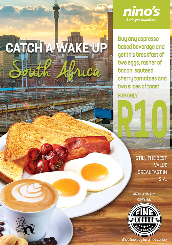 Start your day right with Nino’s coffee and a R10 breakfast!