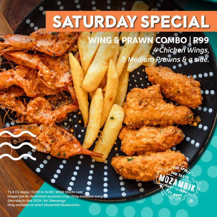 Mozambik invites you to indulge in a delectable combination of wings and prawns, served with a side, all for the unbeatable price of just R99.