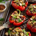 Baby Button Stuffed Red Peppers with Wild Rice, Dried Cranberries & Toasted Pecans Recipe