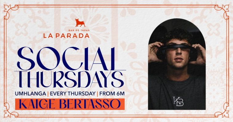 Join La Parada Umhlanga for an exclusive social event with delicious food and amazing drinks paired with local DJs bringing the very best. Gather your friends and get zesty at the La Parada Social Thursdays. Kaige Bertasso will be on the decks to entertain the crowd.
