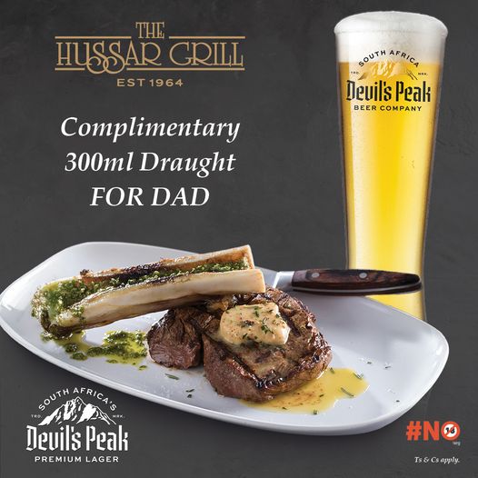 On June 16th, every dad who dines at any Hussar Grill location will receive a complimentary 300ml Devil’s Peak draught beer, perfectly crafted to enhance their dining experience.