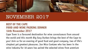 Explore South African wines in a fun environment while enjoying great food! The Big Easy Winebar & Grill will be inviting Glen Carlou Wine Estate to hose a wonderful wine & dine evening on the 22nd of February. The combination of gourmet food, sophisticated wine and great company is one that cannot be beat. Savour […] More
