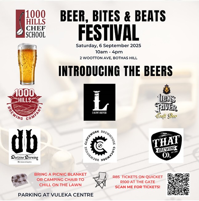 If your perfect Saturday includes cold craft beer, sizzling street food, and live music vibes, mark your calendar for Saturday, 6 September 2025 — because the Beer, Bites & Beats Festival at 1000 Hills Chef School is serving it all up in style.