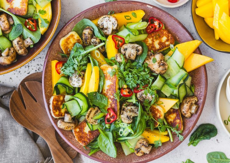 The stealthy Superpower of Mushrooms: Mushroom, Mango & Halloumi Salad Recipe