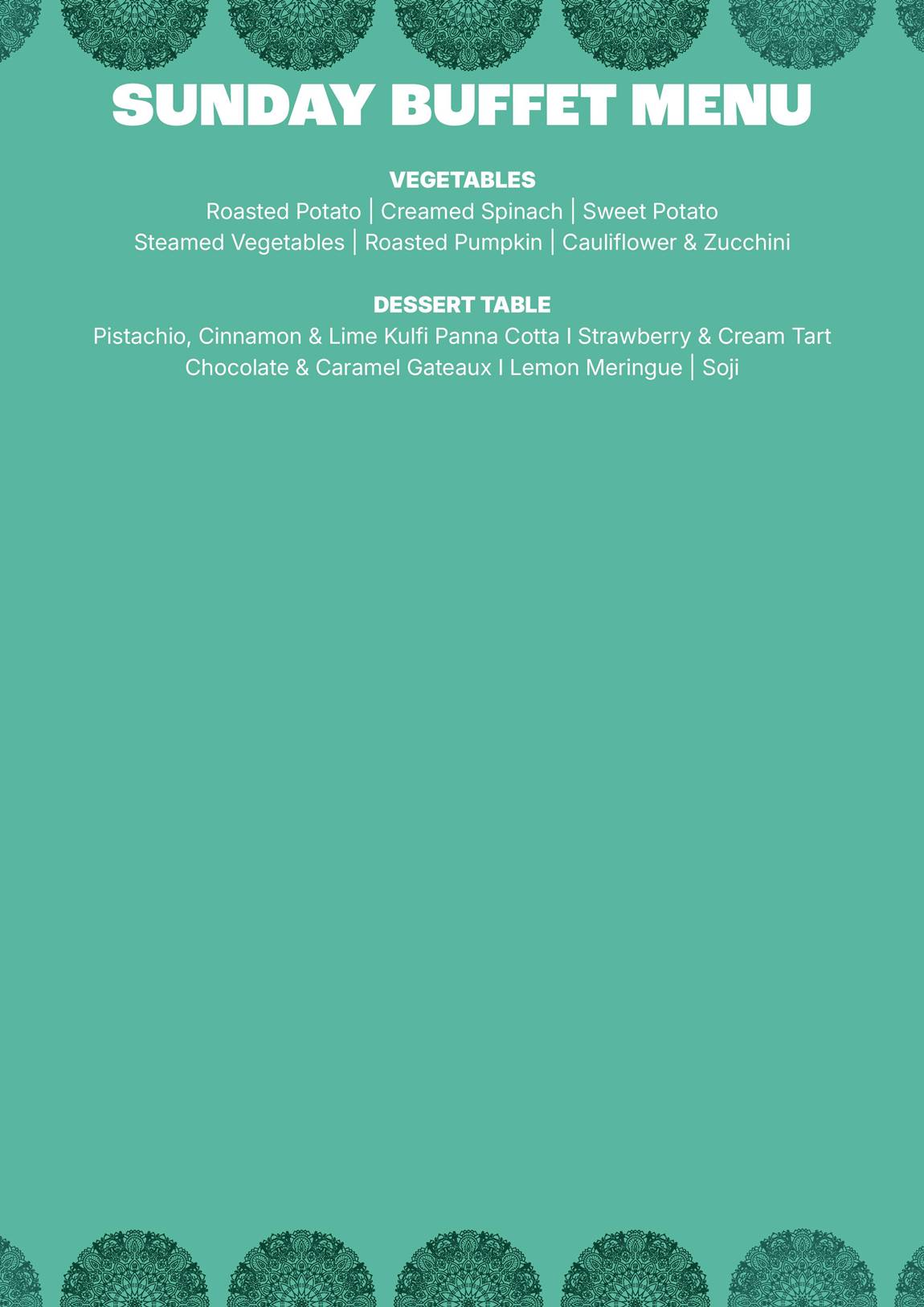 - From there, the buffet builds into heartier dishes. Think Durban lamb curry, seafood paella, grilled prawns, and vegetable biryani, balanced by classic sides like dhal, roti, and yellow rice. The carvery adds another layer, with roast lamb, beef, and chicken sliced to order.