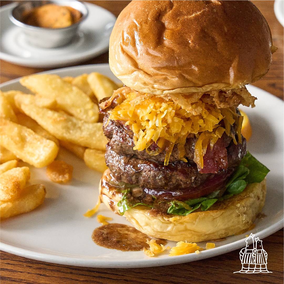 - It features two delicious beef burger patties that are grilled to perfection, topped with crispy bacon, cheddar cheese, and crispy French fried onion rings. This burger is not for the faint of heart – it’s big, bold, and packed with flavor.