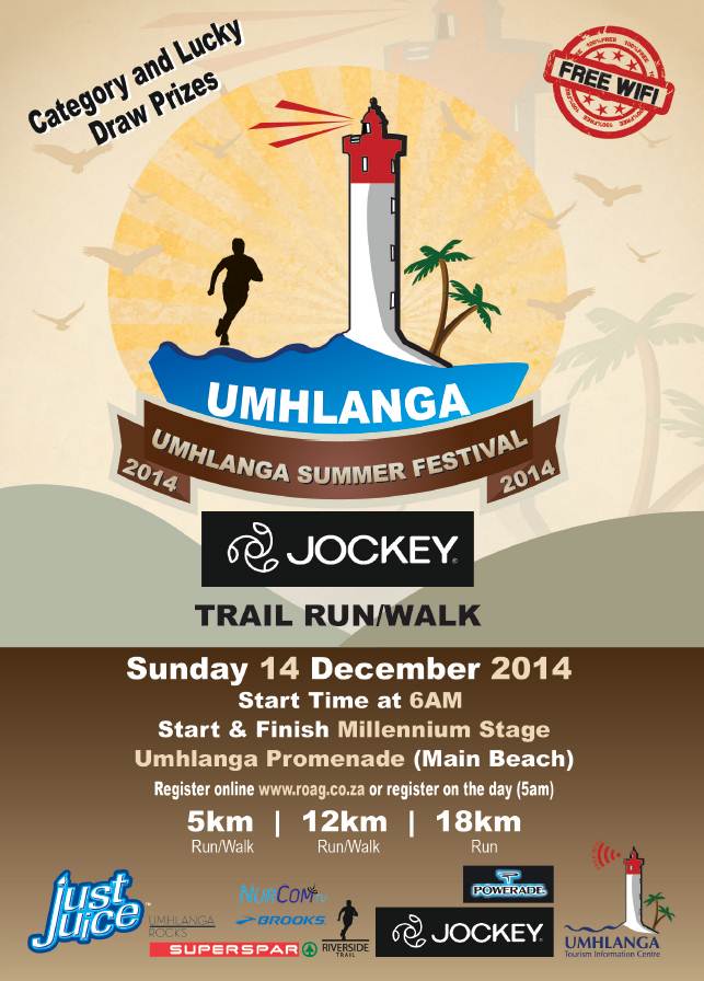 Sunday 14th December will also see the Jockey Trail Run/Walk which will start and finish on the Millennium Stage at Umhlanga Main Beach.  Trail enthusiasts will have the option of 5km, 12km or 18km to choose from. To register visit www.roag.co.za