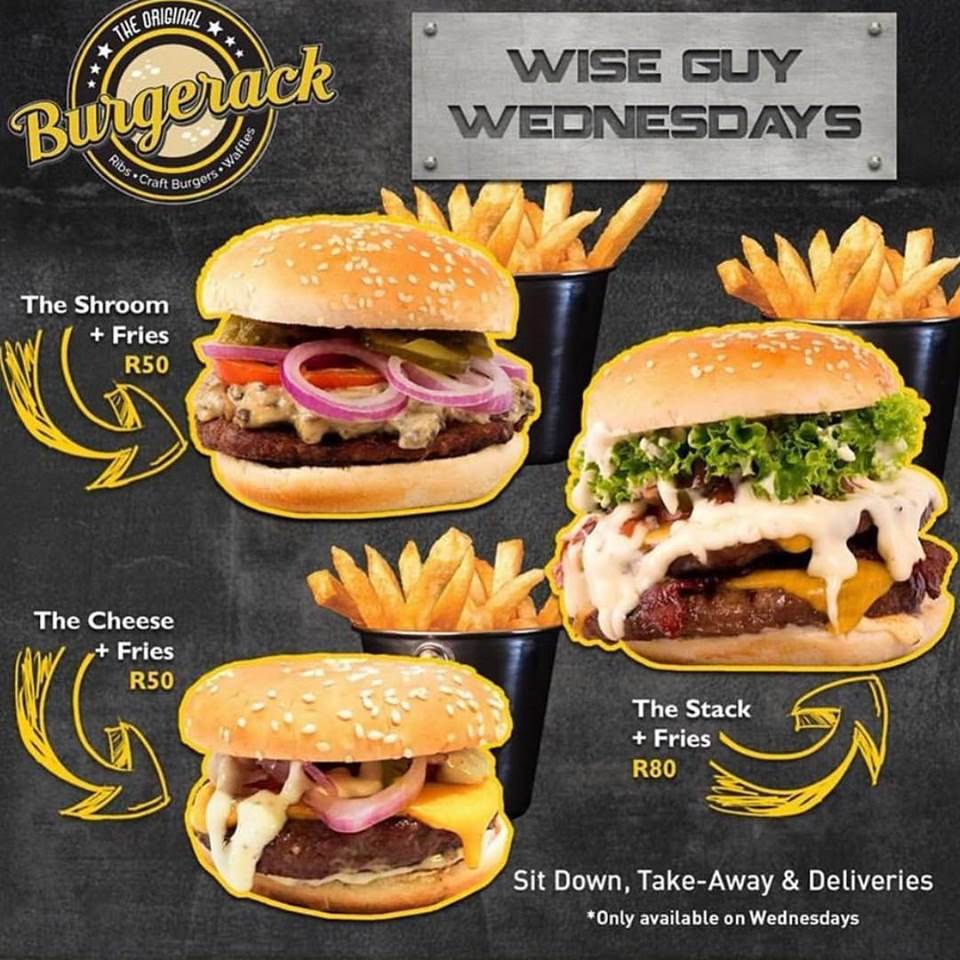 Every Wednesday they’re offering a burger and fries for only R50! And unlike most burger specials, this one IS available for takeaway or delivery. Bonus!