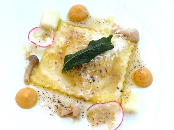 Puree, pickled apples, shaved radish and sage beurre noisette