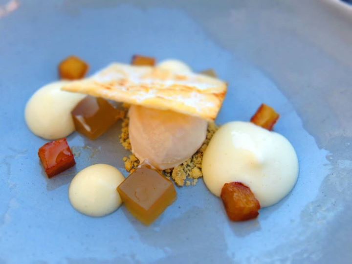 Green apple jelly, crème anglaise espuma and salted caramel ice cream