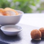 Salty crisps, ‘cocktail’ espuma, sweet corn arancini