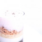 Vanilla panacotta, custard, orange meringue, black pepper crumble and rhubarb espuma