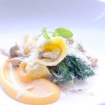 Butternut puree, baby spinach, parmesan and chestnut sauce