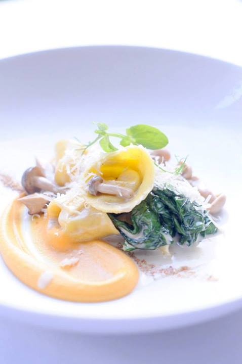 Butternut puree, baby spinach, parmesan and chestnut sauce